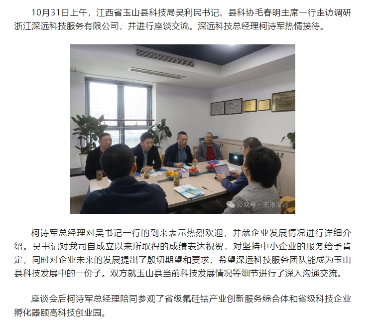 玉山縣科技系統領導走訪深遠公司
